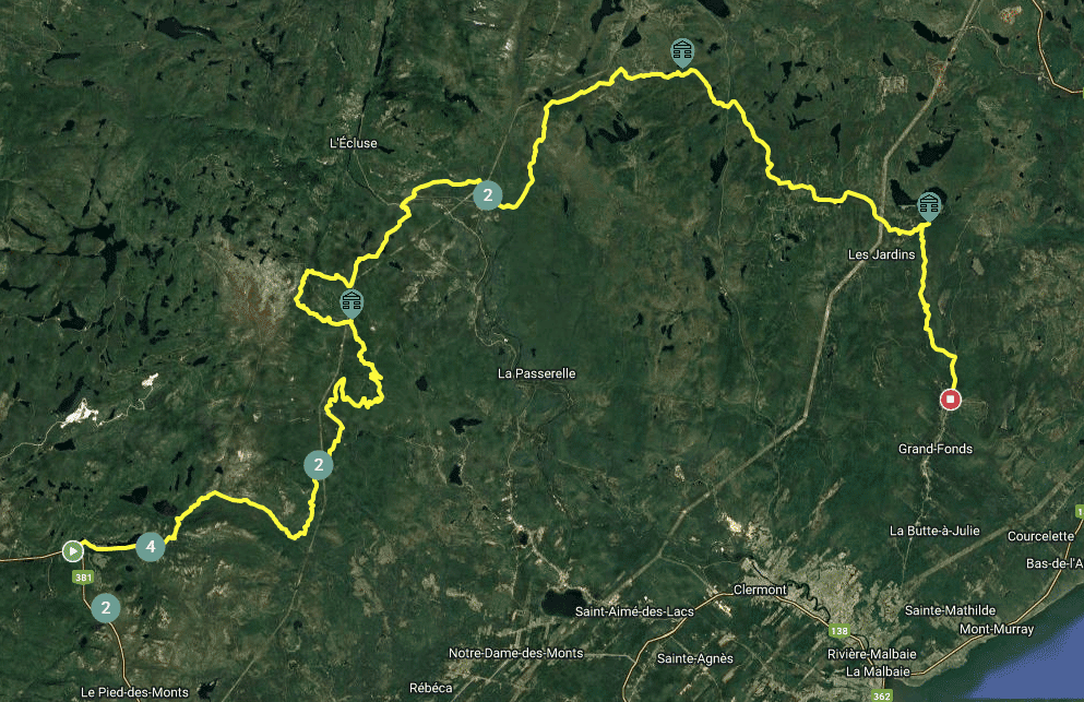 Pédestre, ski et vélo à partir de l’accueil de la ZEC des Martres (km 26,8 de la route 381): 4,2 km