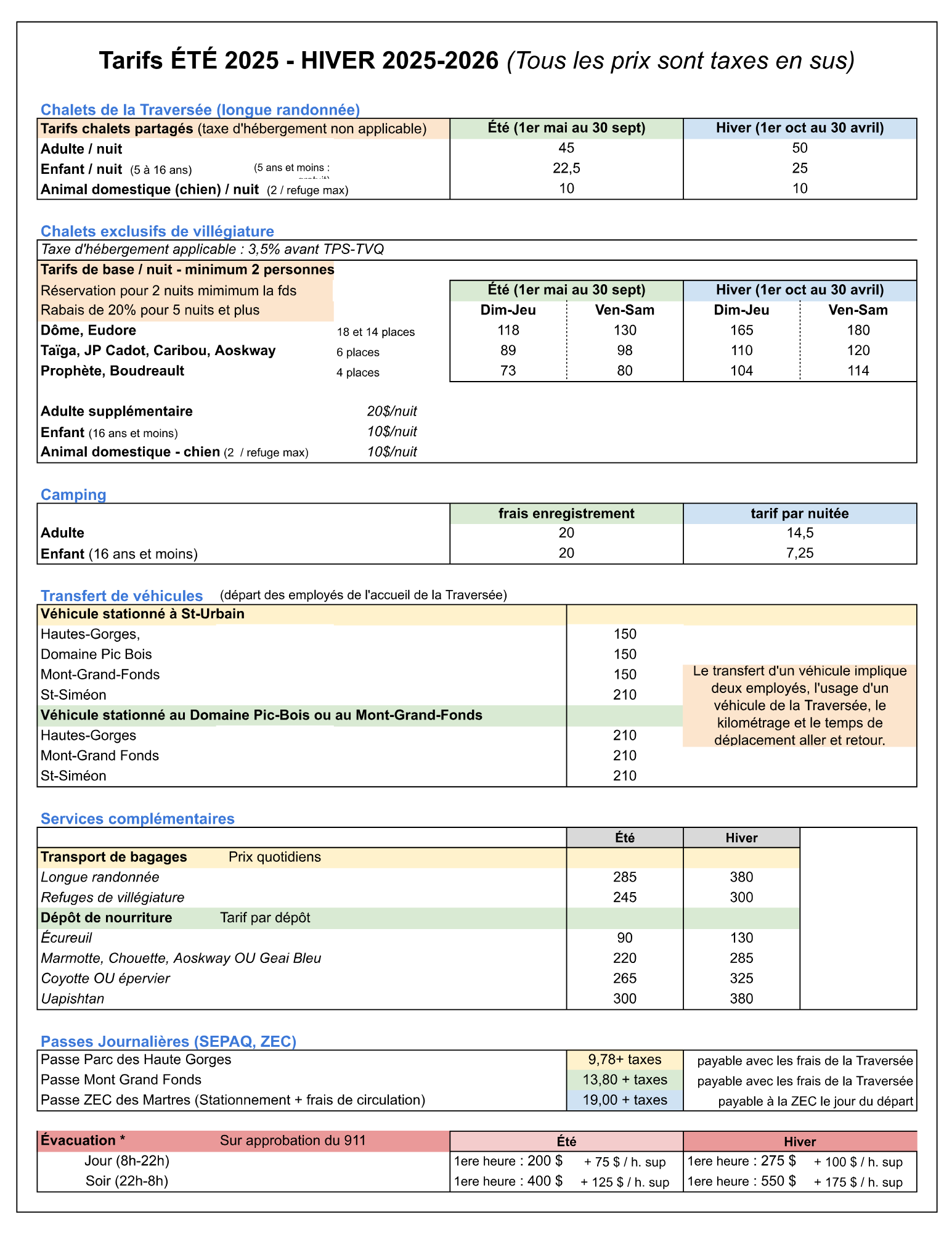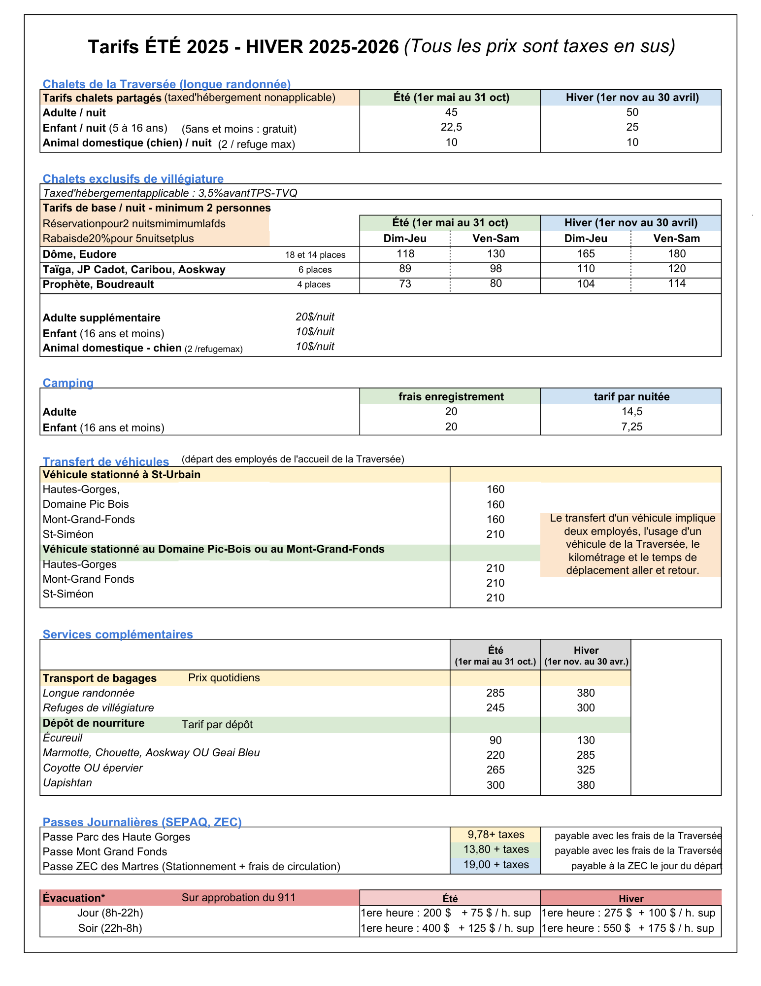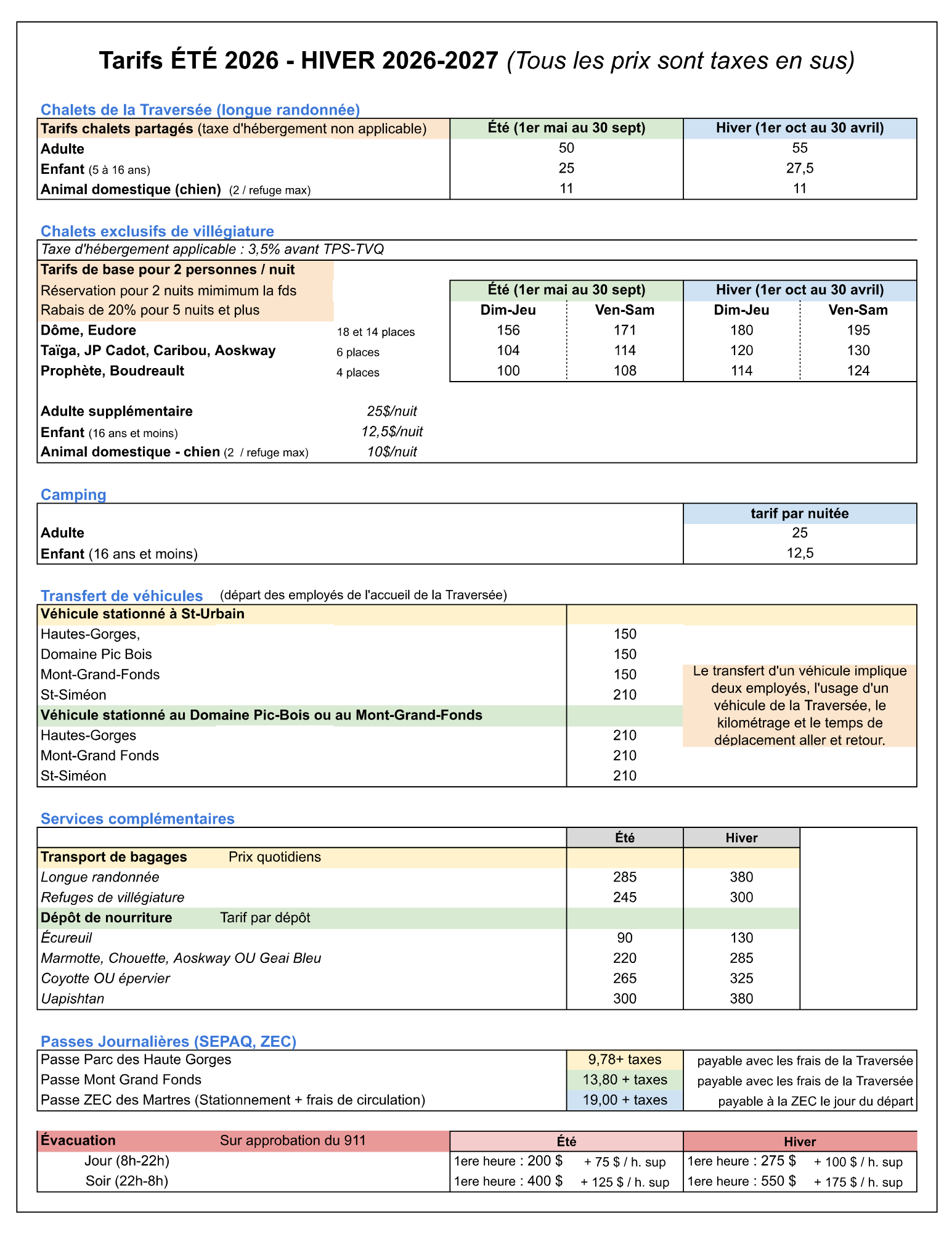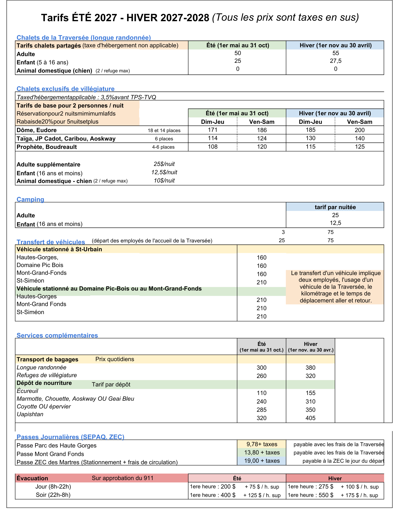 Tarifs Voir notre politique de réservation pour l’hébergement. Voir notre politique de réservation des services.